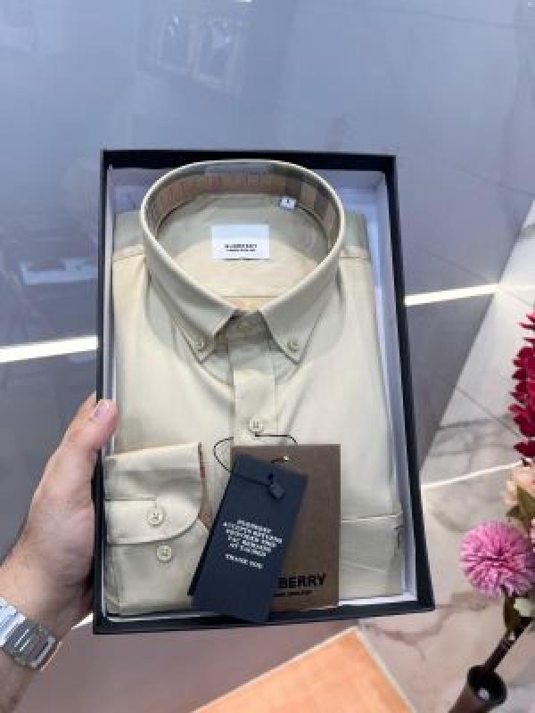 Burberr y Beige Premium Imported Embroidered Logo Shirt with custom Branded Button Tagging And Brand Packing 3253