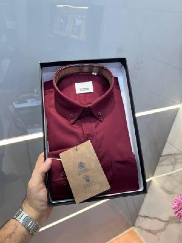 Burberr y Maroon Premium Imported Embroidered Logo Shirt with custom Branded Button Tagging And Brand Packing 3249