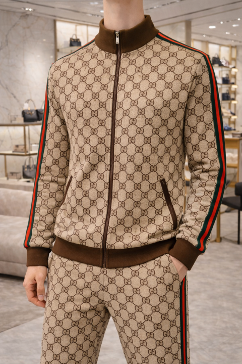 Gucc i Imported Brown Monogram Super Premium Track Suit With Brand Carry Bag F3149-BR