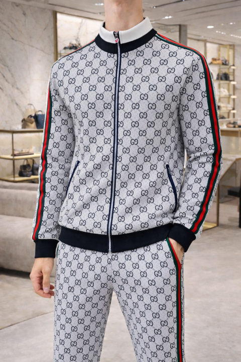 Gucc i Imported White Monogram Super Premium Track Suit With Brand Carry Bag F3149-WH