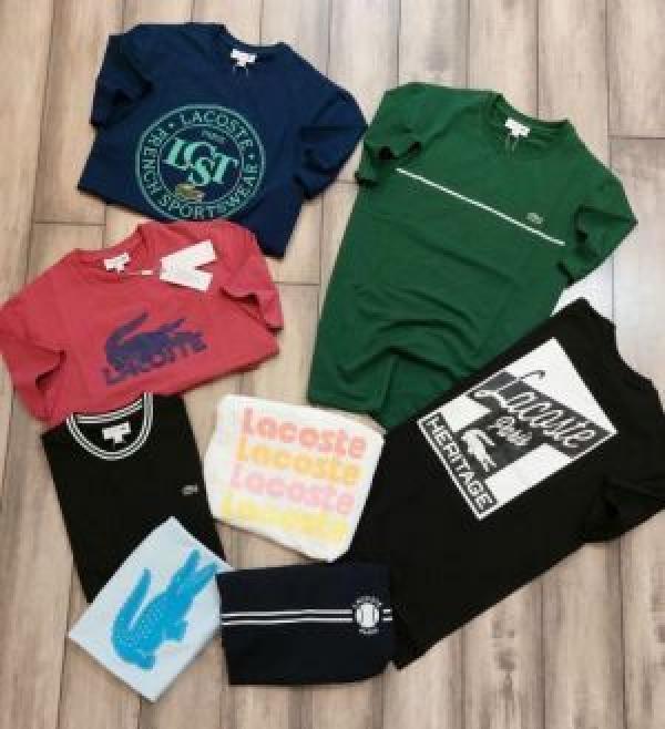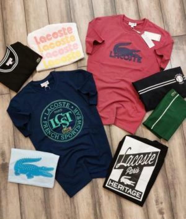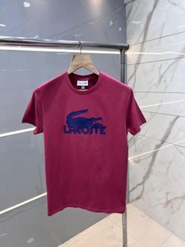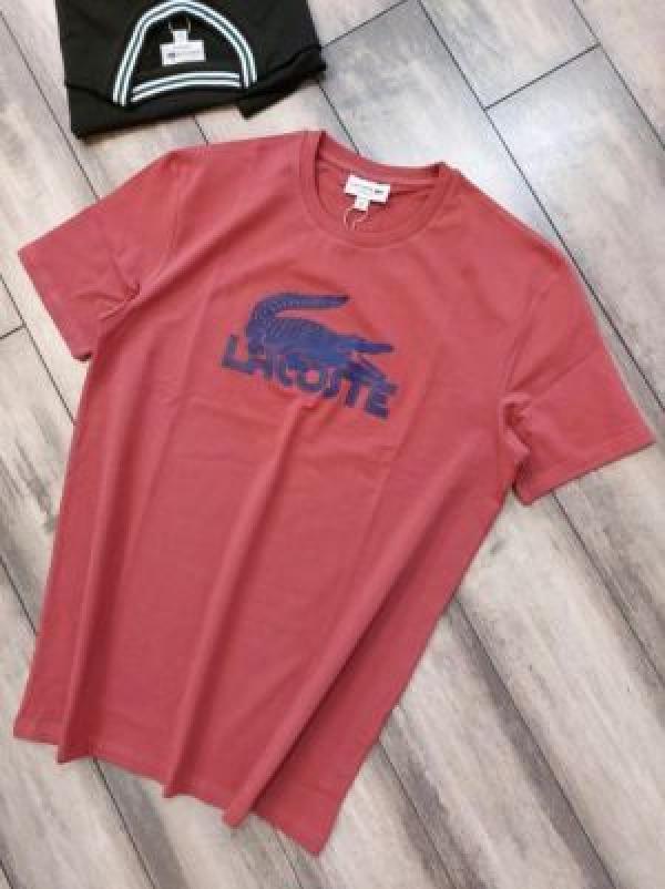Lacost e TomatoRed Premium Imported 200 GSM Interlock Lycra Fabric Round Neck Printed Logo Tshirt 2663