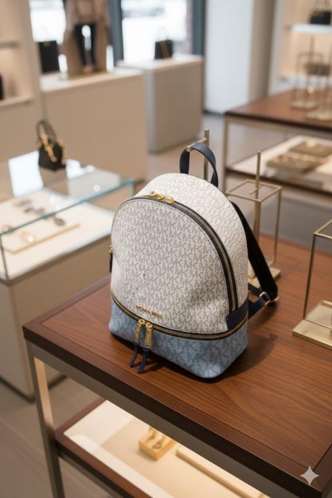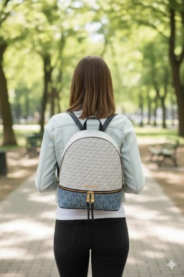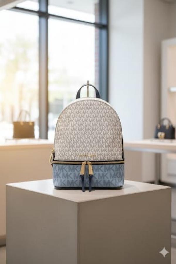 Michael_Kors_Rhea_Medium_Color-Block_Brown_Logo_Backpack_Blue_With_Dust_Bag 1005