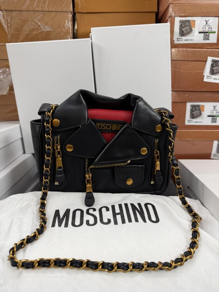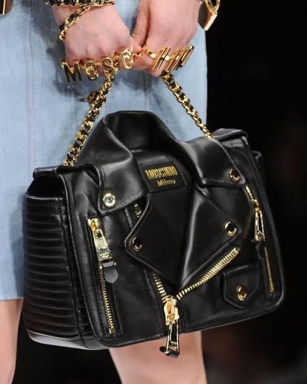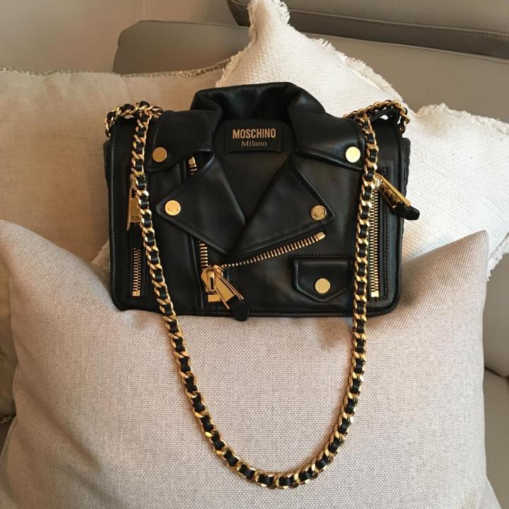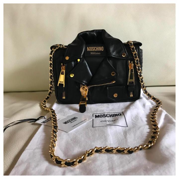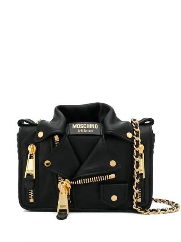 MOSCHINO BIKER JACKET BLACK LEATHER PREMIUM WITH DUST BAG